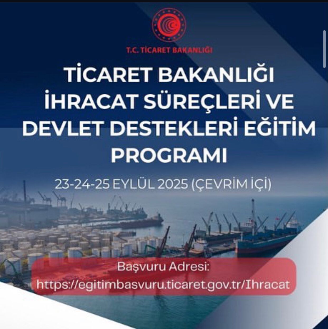 Ticaret bakanlığı İhracat Süreçleri ve Devlet Destekli Eğitim Programı 23-24-25 Eylül 2025 tarihlerinde çevrim içi bir eğitim programı gerçekleştirilecektir. Eğitim programı sonunda, eğitimin en az üçte ikilik kısmına katılım sağlayan